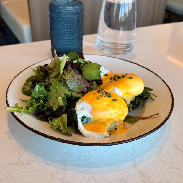 We each ordered a cup of clam chowder to start. I opted for the lobster roll with salad, and my husband got the crab cake benedict. Everything was so tasty!